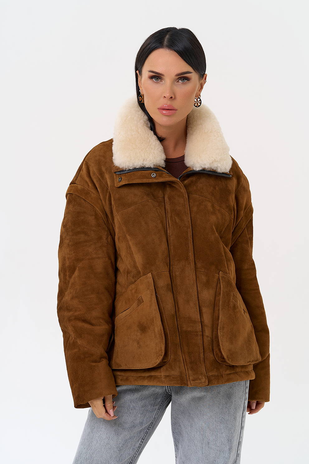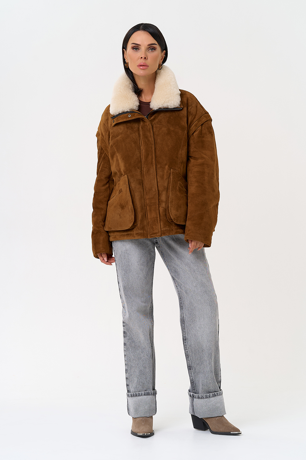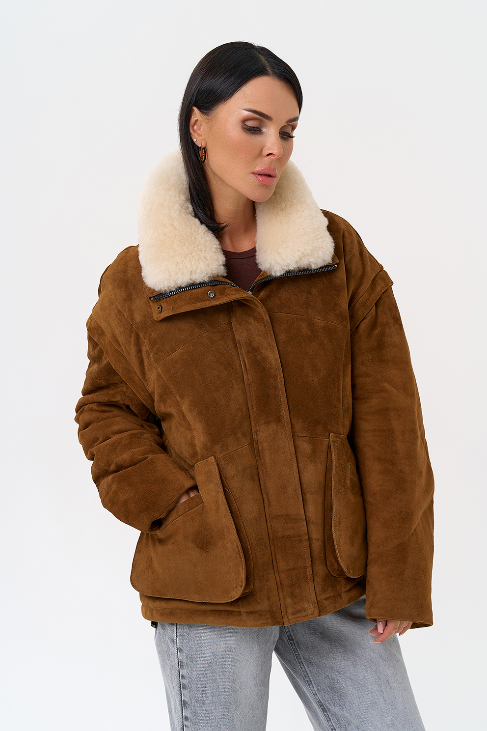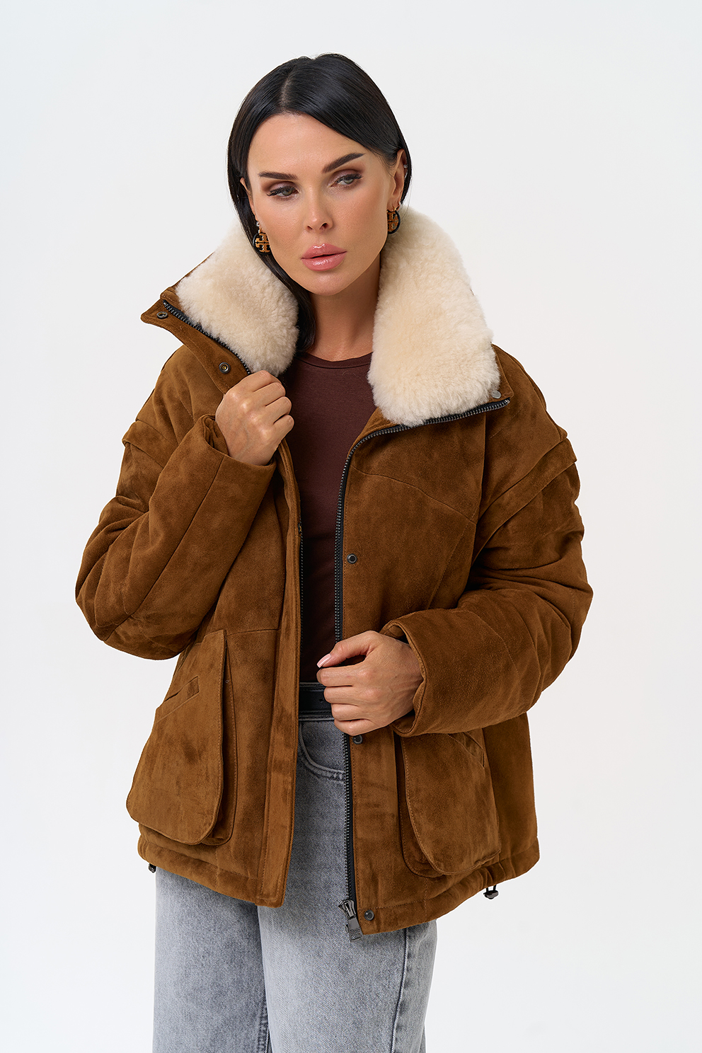 Тип ворота - отложной воротник, отделка овчина