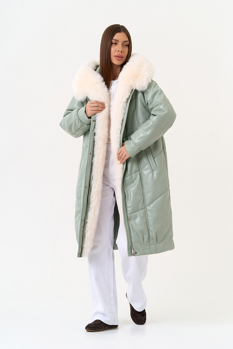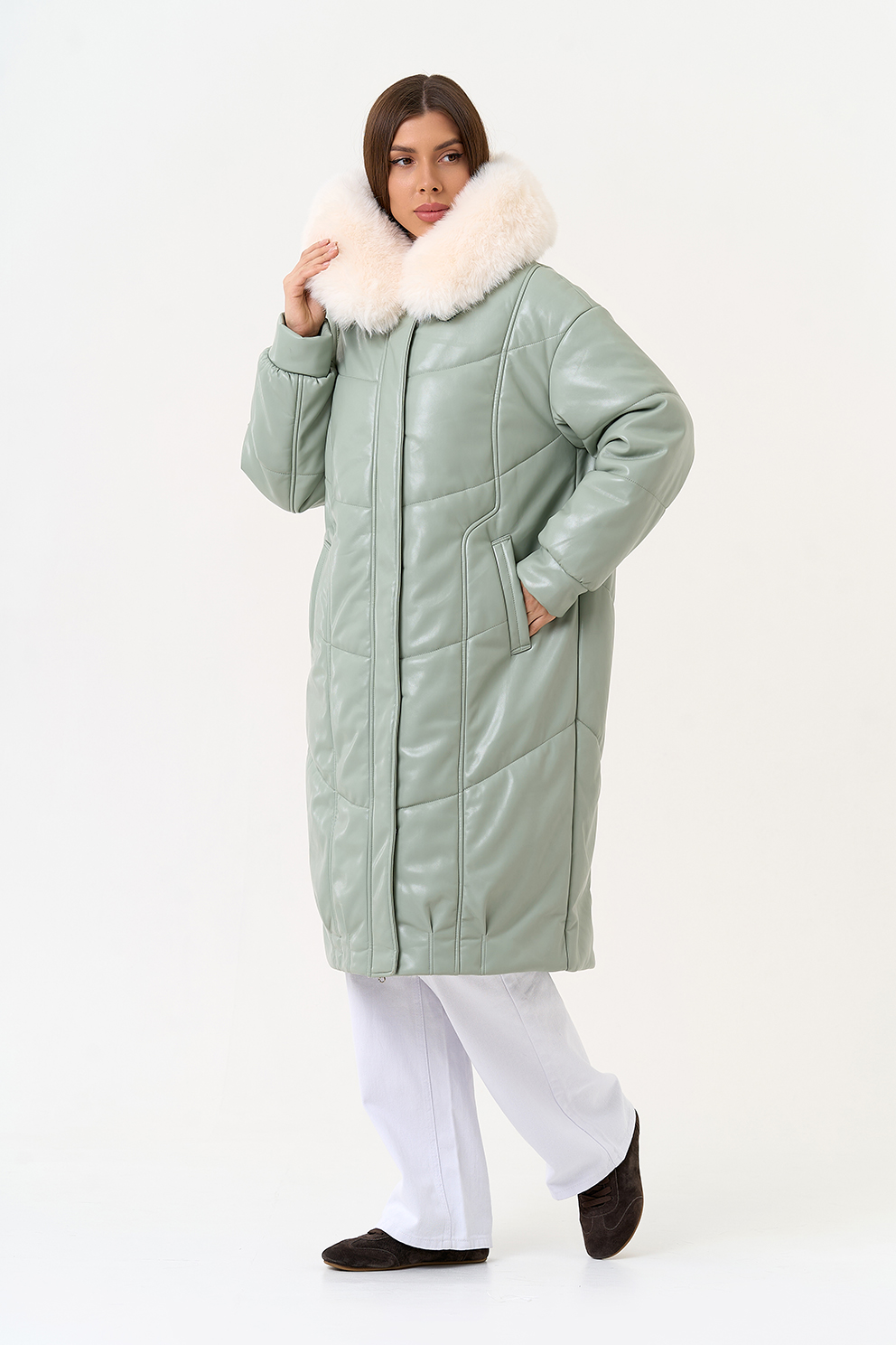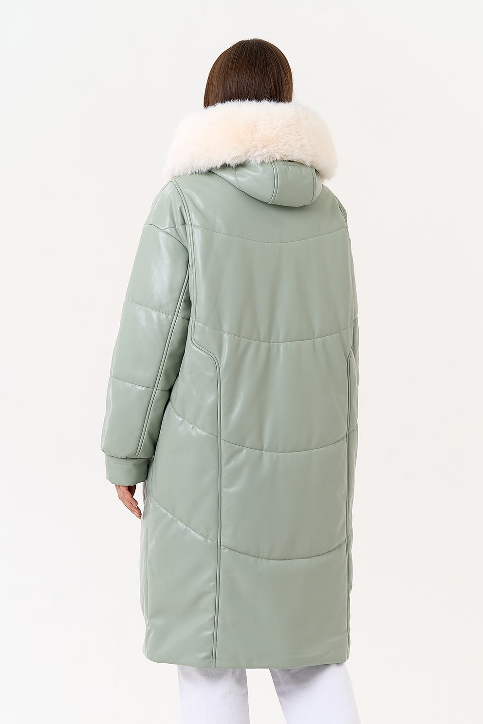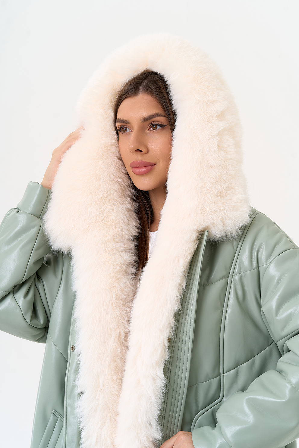 Отделка воротника - эко мех под мех енота, цвет белый